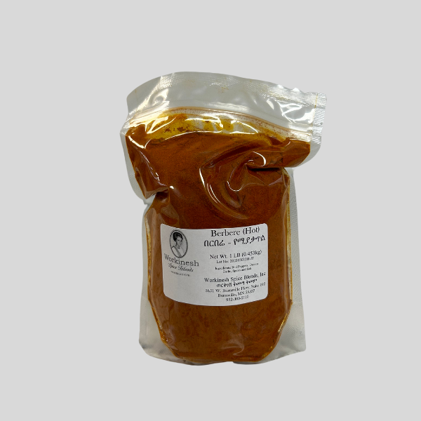 Workinesh Berbere (Hot) is a bold and fiery spice blend, essential to traditional Ethiopian cuisine. Made from a mix of chili peppers, garlic, ginger, and a variety of aromatic spices, this blend brings a complex heat and rich depth of flavor to any dish. Berbere is the cornerstone of many Ethiopian stews, including the famous Doro Wat (spicy chicken stew), adding both spice and character to the dish.